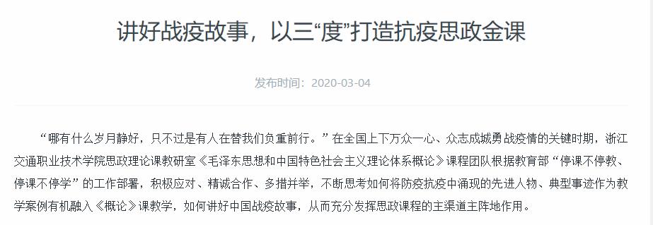 上一条:现代职教:职教战“疫”|“停课不停学”高质量课堂“课”不容缓——轨道交通学院线上教学质量报告