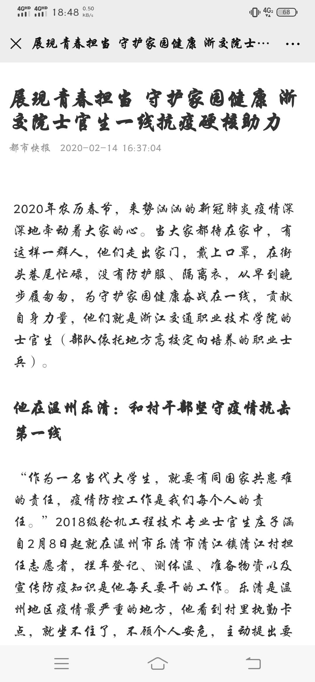 上一条:中国高职高专教育网:展现青春担当 守护家园健康 浙我院士官生一线抗疫 硬核助力