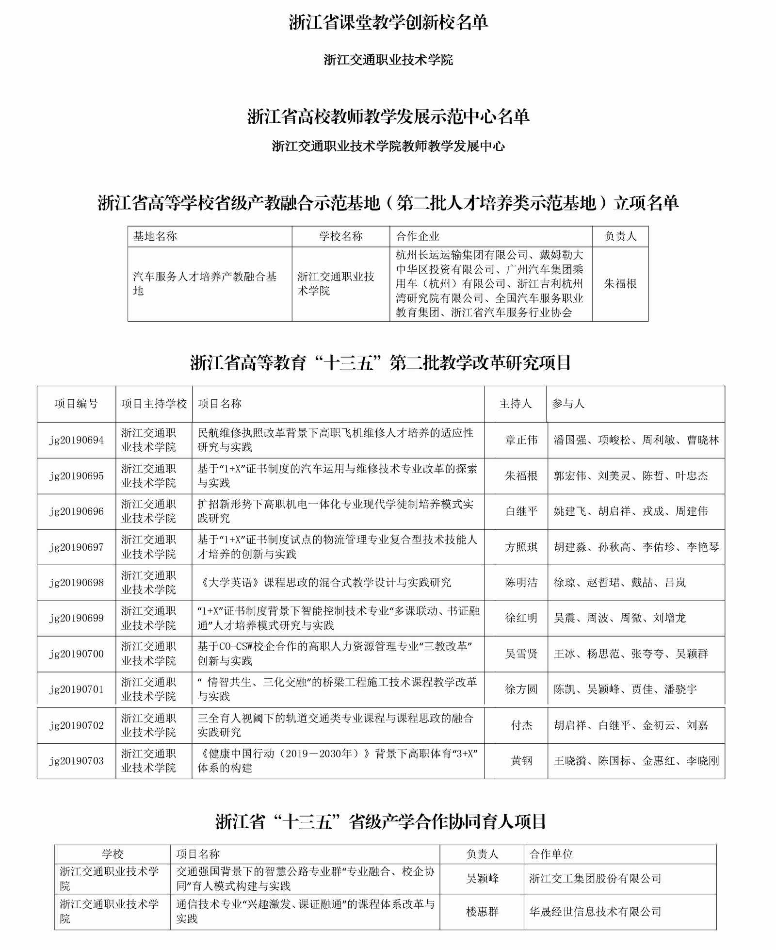 12月31日,由省教育厅组织的高等教育“十三五”人才培养项目建设评审结果出炉,经专家评审,学院在全部五大类项目(第六项为本科类项目)中均有斩获。被认定为“省课堂教学创新校”、省高校教师教学发展示范中心;被评为省高等学校省级产教融合示范基地(第二批人才培养类示范基地);《民航维修执照改革背景下高职飞机维修人才培养的适应性研究与实践》等10个教改项目纳入省高等教育“十三五”第二批教学改革研究项目;《交通强国背景下的智慧公路专业群“专业融合、校企协同”育人模式构建与实践》等2个项目被立项为省“十三五”省级产学合作协同育人项目。