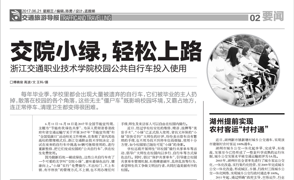 交通旅游导报报道我校“小绿车”