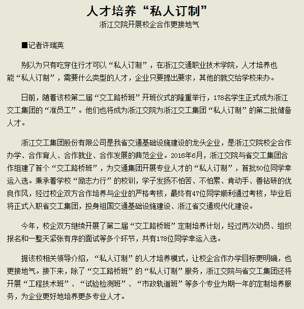 中新网:第二届“交工路桥班”开班校企合作“订制”人才