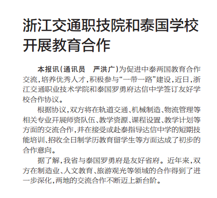 浙江教育报:浙江交通职技院和泰国学校开展教育合作