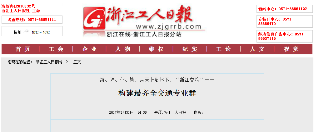 浙江工人日报网:海陆空轨 从天上到地下 yl6809永利官网构建最齐全交通专业群