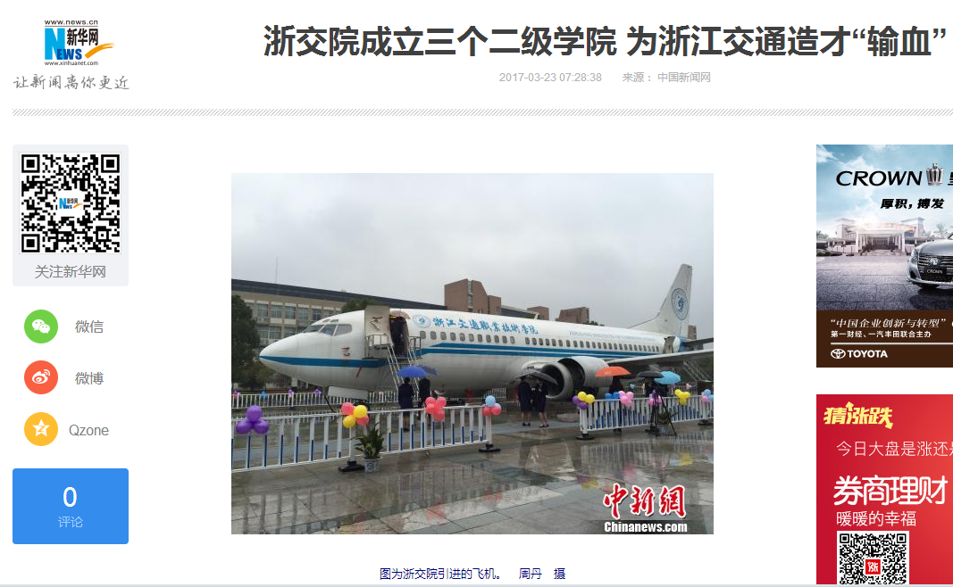 新华网:浙我院成立三个二级学院 为浙江交通造才“输血”