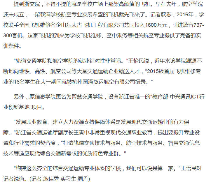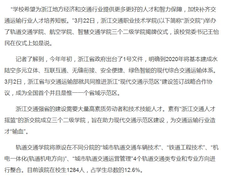 浙江教育新闻网:浙江交通职院新增三个二级学院 学校专业涵盖海陆空轨