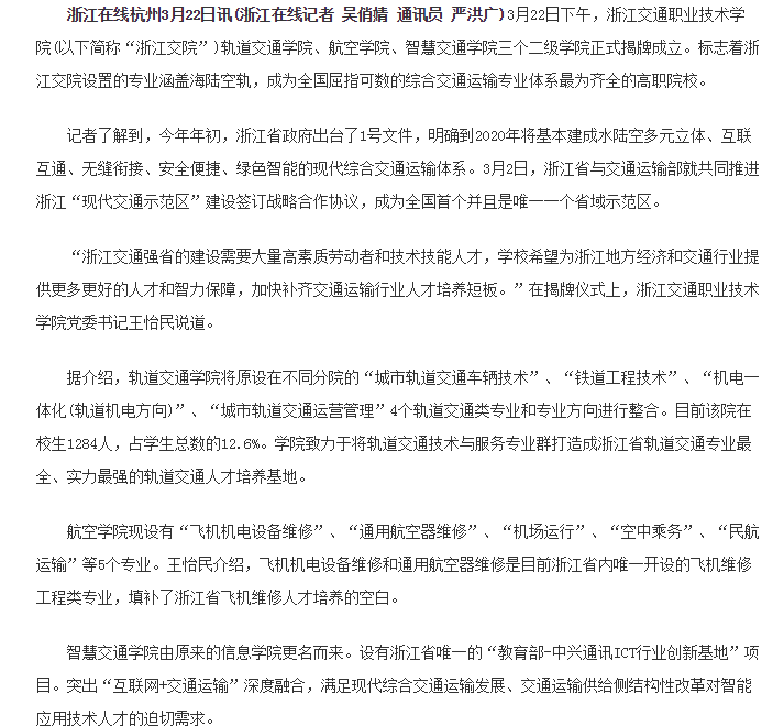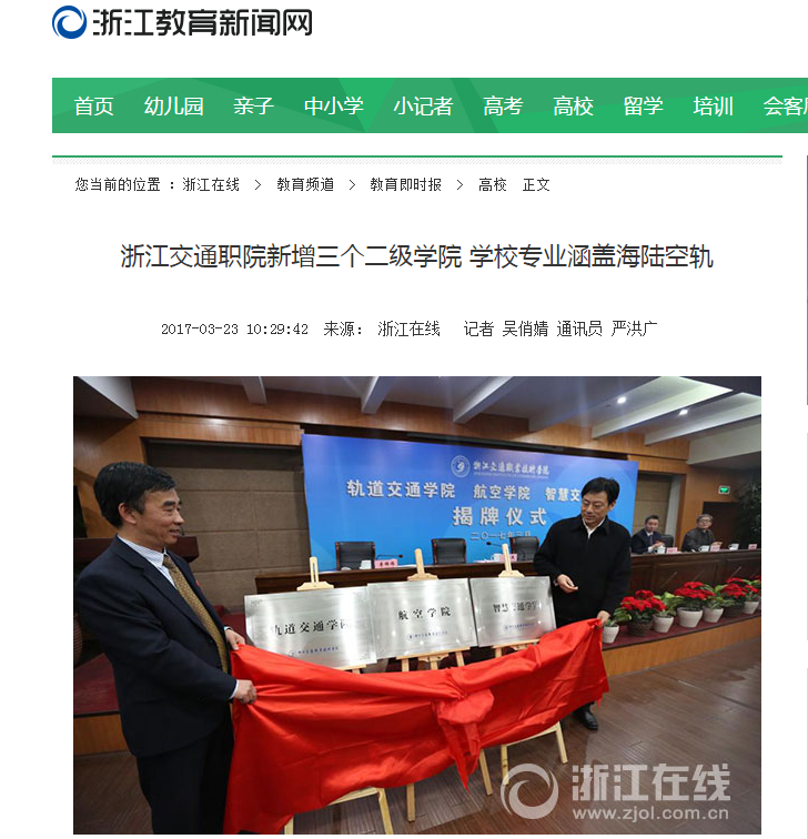 浙江教育新闻网:浙江交通职院新增三个二级学院 学校专业涵盖海陆空轨
