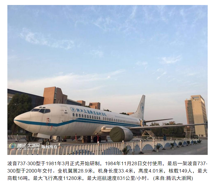 腾讯大浙网:杭高校为准空姐引进大飞机 揭秘波音737结构