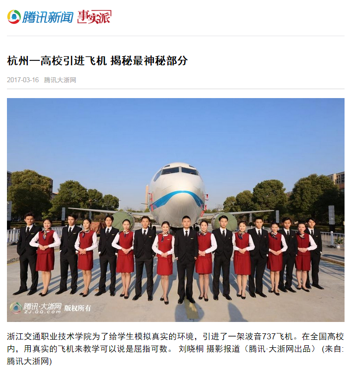 腾讯新闻:杭州一高校引进飞机 揭秘最神秘部分