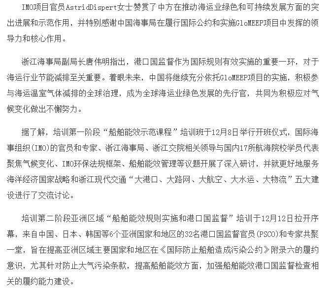 新华网:亚洲区域“船舶能效规则实施和港口国监督”培训举行