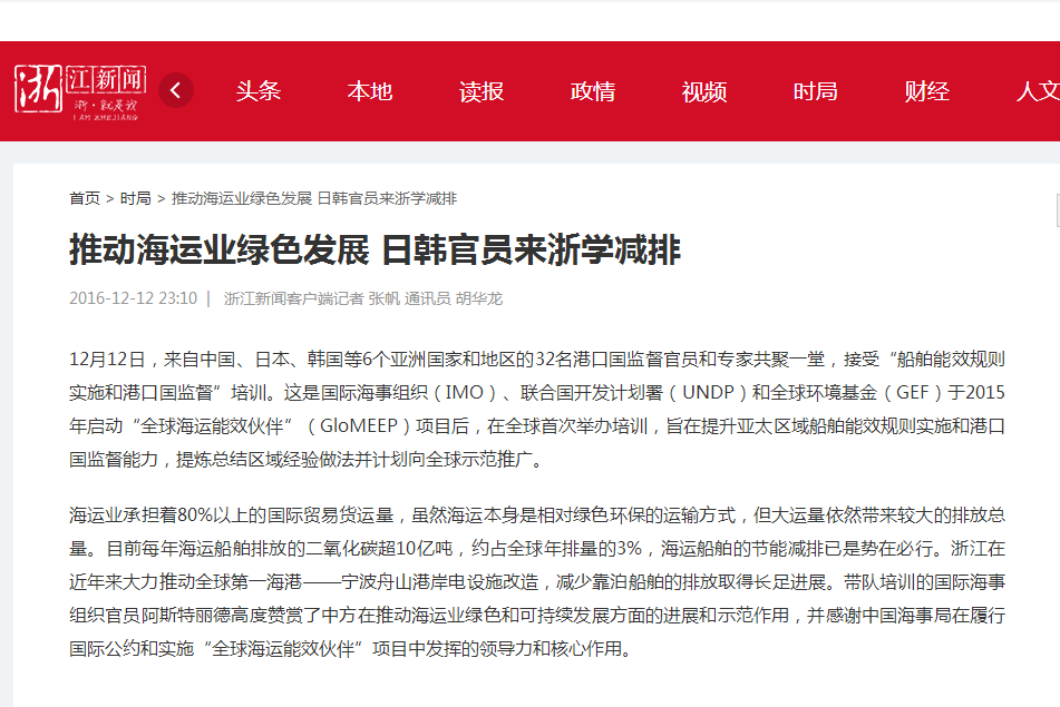 浙江新闻:推动海运业绿色发展 日韩官员来浙学减排