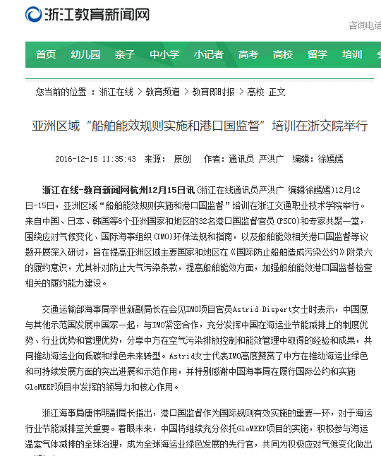 浙江教育新闻网:亚洲区域“船舶能效规则实施和港口国监督”培训开幕