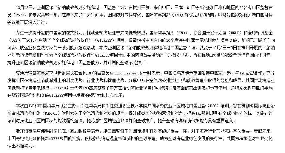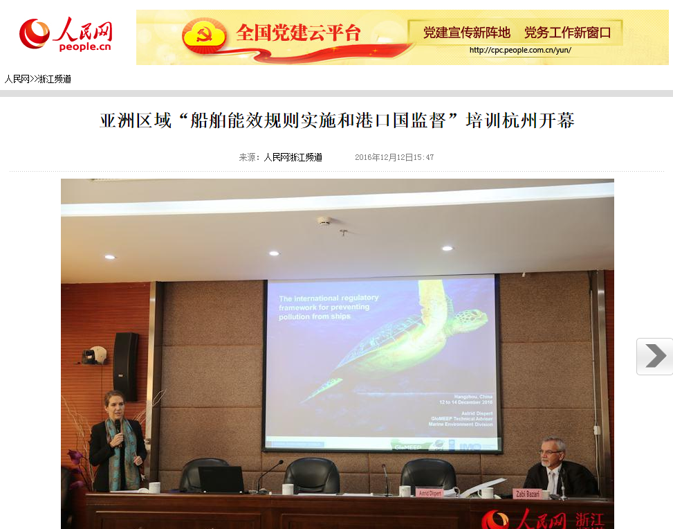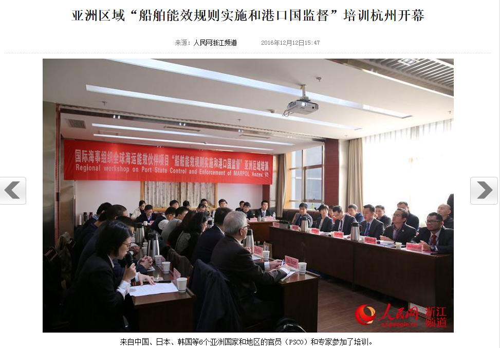 人民网:亚洲区域“船舶能效规则实施和港口国监督”培训杭州开幕