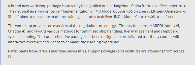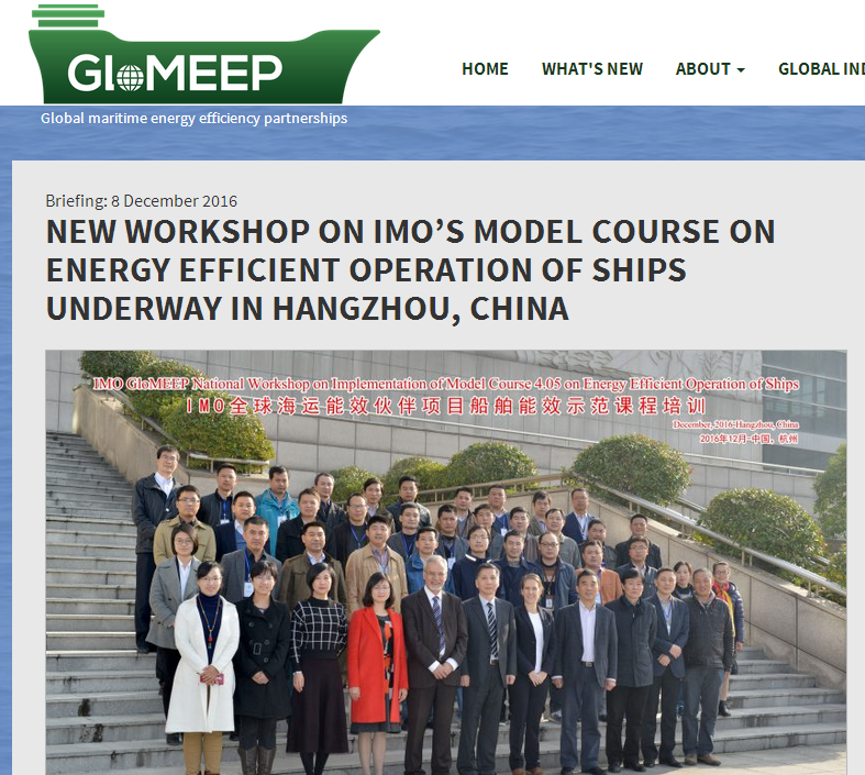 国际海事组织网站:全球海运能效伙伴项目示范课程培训班在杭州开幕