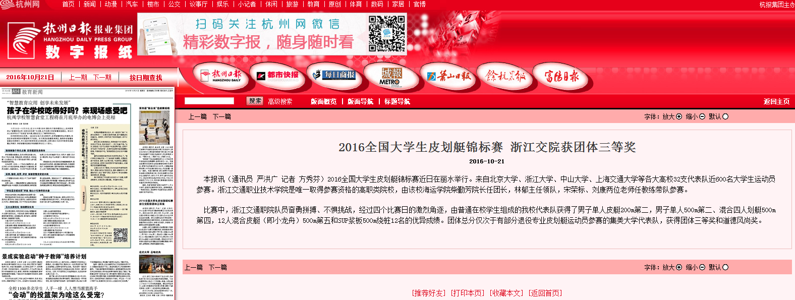 下一条:杭报在线:2016全国大学生皮划艇锦标赛 yl6809永利官网获团体三等奖!