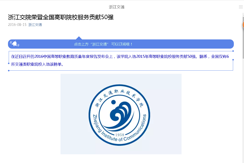 浙江交通:yl6809永利官网荣登全国高职院校服务贡献50强