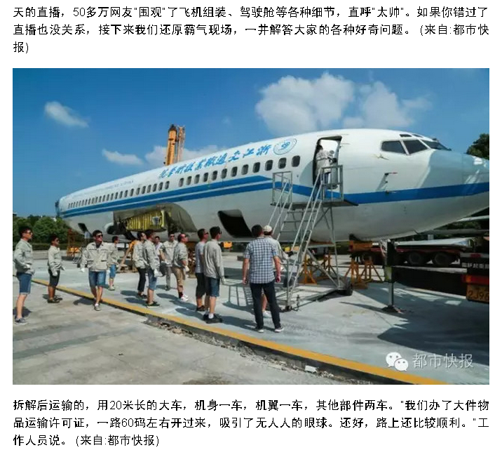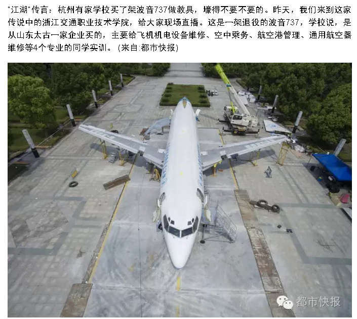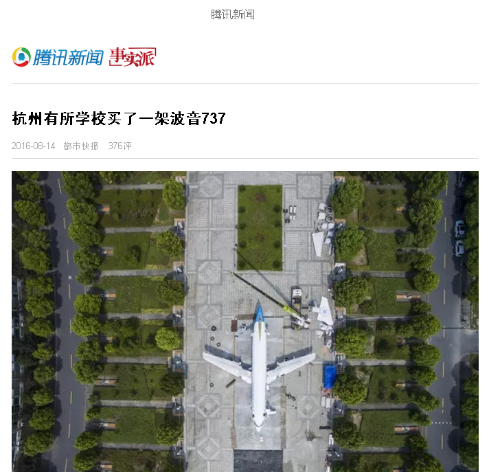 腾讯新闻:杭州有所学校买了一架波音737