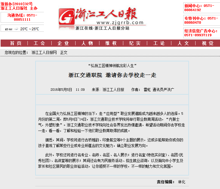 浙江工人日报关注学校职业教育活动周