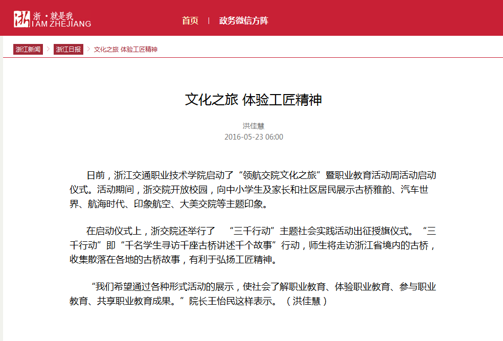 浙江日报报道学校“文化之旅 体验工匠精神”