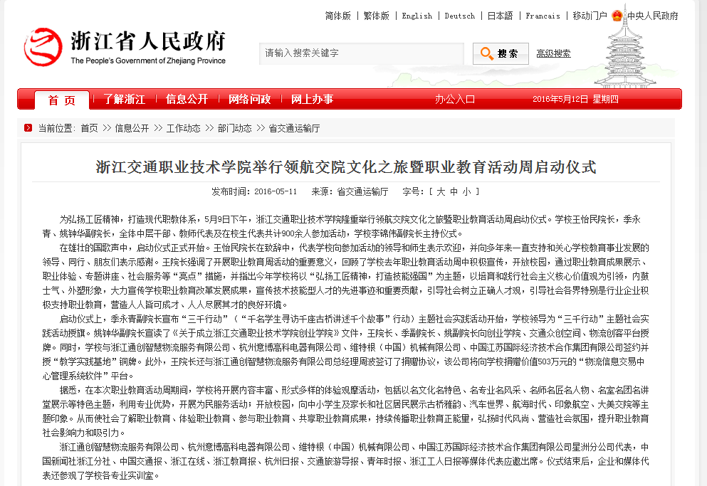 省政府网站报道学校举行领航我院文化之旅暨职业教育活动周启动仪式