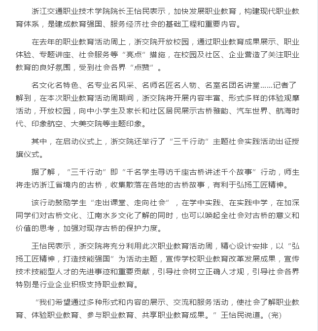 浙江工人日报关注学校职业教育周活动