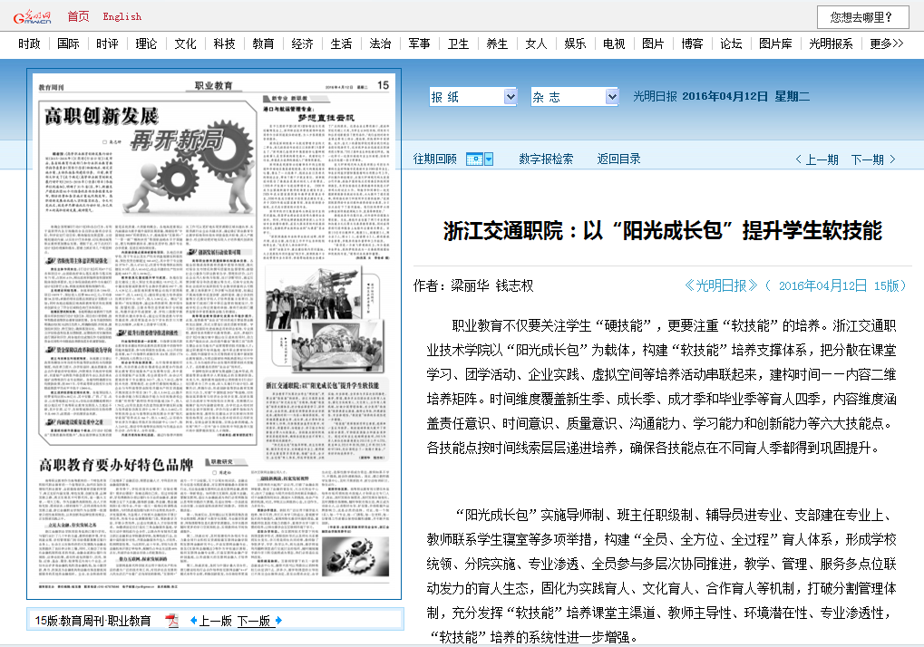 光明日报报道我校以“阳光成长包”提升学生软技能
