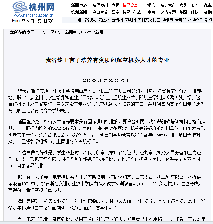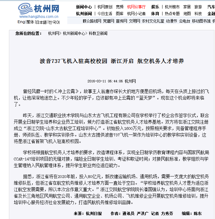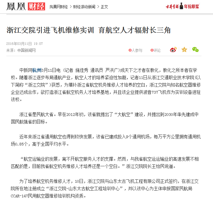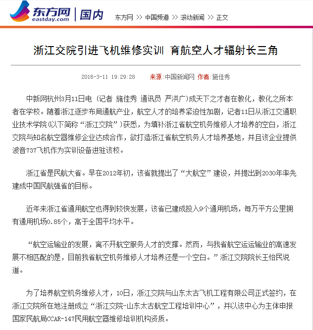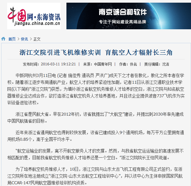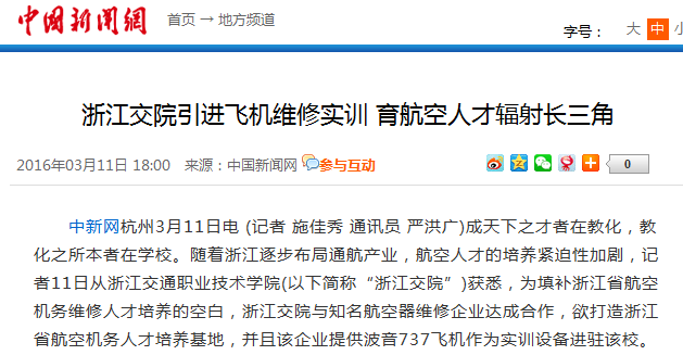 中国新闻网等媒体聚焦我校航空机务人才培养