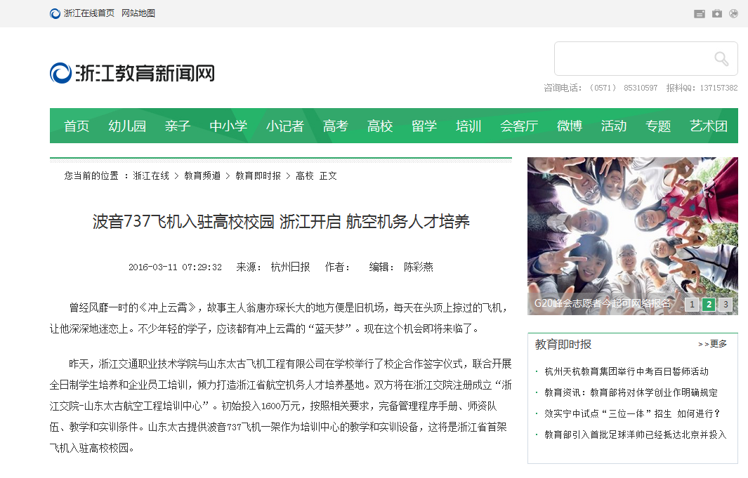 浙江在线关注我校机务人才培养