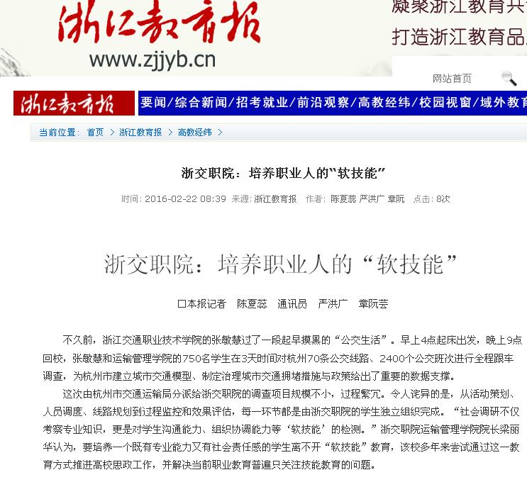 自2005年开始,浙交职院开展了以“软技能”培养为抓手提升学生综合素质的实践,并将其作为必修学分纳入了人才培养方案。
