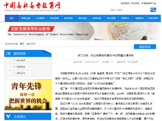 【浙江交通】微信头条报道教育部ICT行业创新基地落户我校