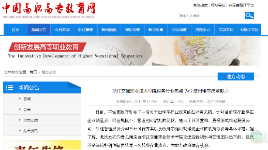 《中国高职高专网》报导我校服务行业热点,为宁波出租车改革献力