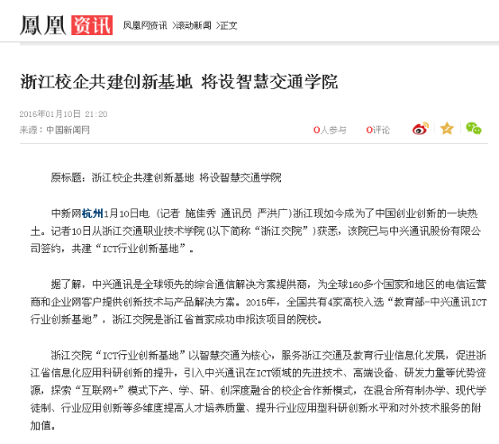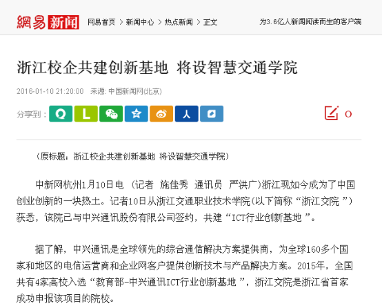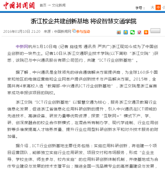 《中国新闻网》等媒体报导我校与中兴合作项目