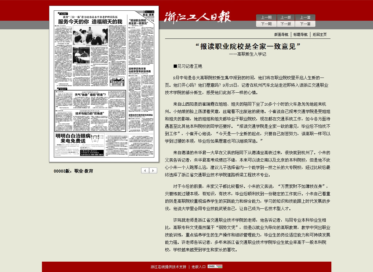 许玮珑老师是浙江省交通职业技术学院的老师,他告诉记者,与同专业本科毕业生相比,高职专科文凭虽然属于“弱势文凭”,但是以就业为导向的高职教育,教学中突出职业技能训练,重点培养学生的生产操作和组织管理能力,毕业生的岗位适应能力和可持续发展能力强。许老师告诉记者,多年来浙江省交通职业技术学院毕业生就业率高于一般本科院校,学校越来越受到学生和家长的喜欢。