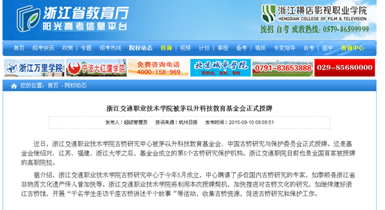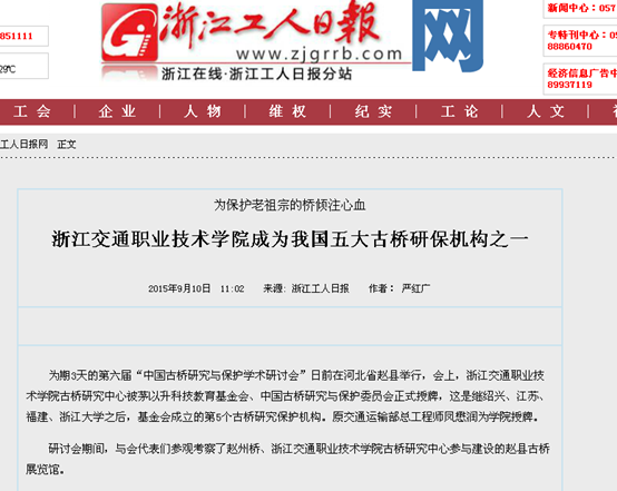 浙江工人日报、浙江省教育厅网报导我校古桥研究中心成为全国五大古桥研究机构