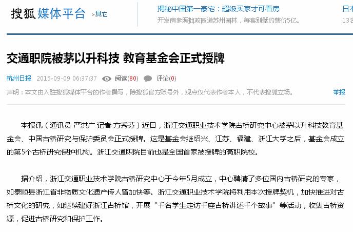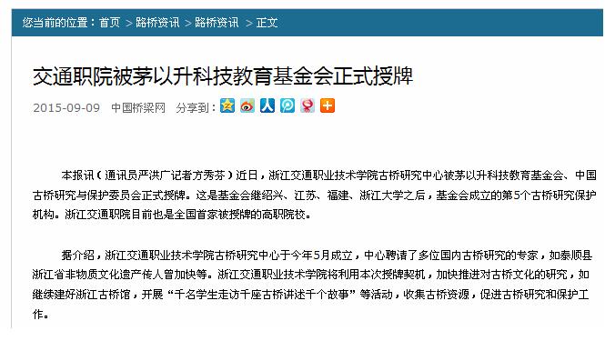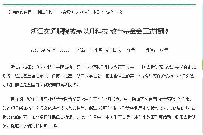 下一条:杭州市政府、浙江省教育厅门户网站报道:茅以升科技教育基金会正式授牌我校