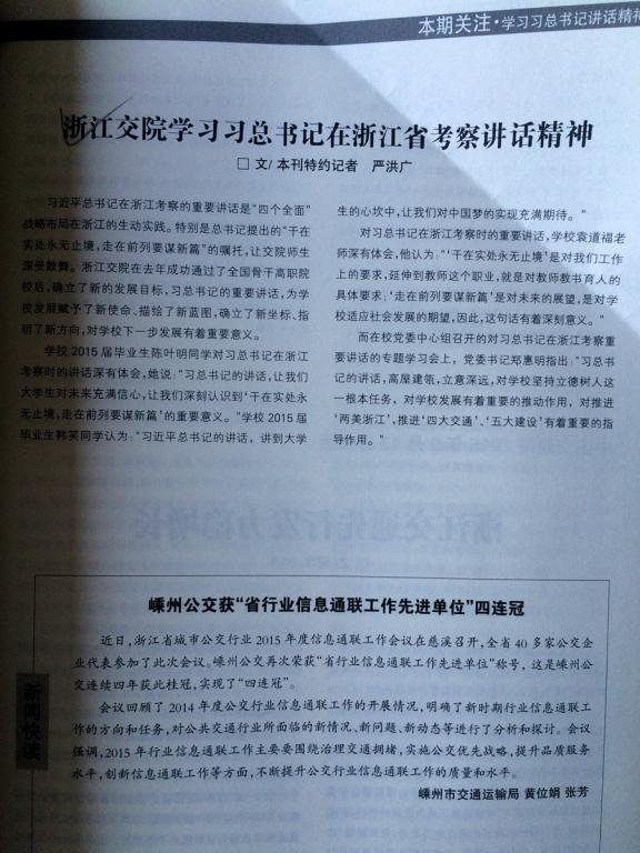 《浙江交通》报道我校学习习总书记在浙江省考察讲话精神