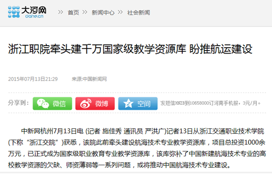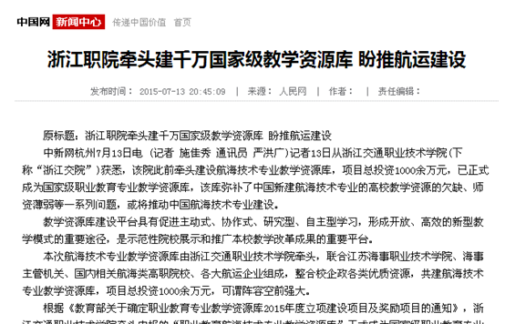 《浙江省人民政府网》、《网易新闻网》报道我校教学资源库建设
