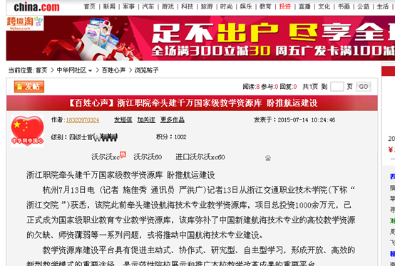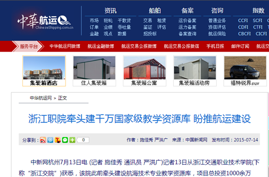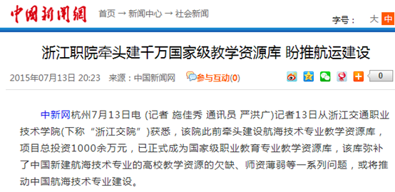 中国新闻网等媒体报导我校国家级资源库建设项目