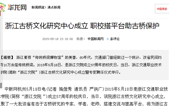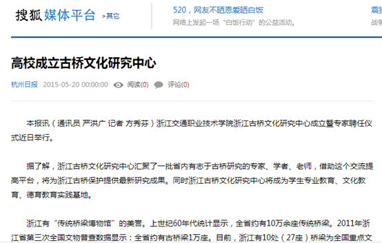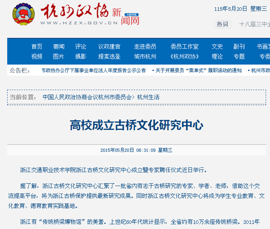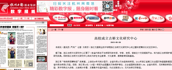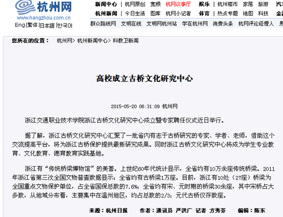 《杭州日报》等媒体报导我校古桥文化研究中心
