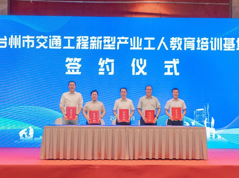 6月18日下午,台州市交通工程新型产业工人教育培训基地建设启动仪式在甬台温改扩建台州南段隆重举行。我校作为共建单位之一,同台州市交通工程管理中心、台州交投高速公路有限公司、腾达建设集团股份有限公司、闽通数智安全顾问(杭州)有限公司4家共建单位,分别依托各自优势,签署产业工人教育培训共建框架协议,成立“交通产业工人全过程教育培训与成长认证中心”。这是全市交通工程建设领域的第一个产业工人培训基地。来自全市交通建设工程战线的150多名领导专家齐聚一堂,共同见证了这一历史性时刻。学校党委委员、副校长顾凯峰,继续教育学院党支部书记、院长金湖庭参加了仪式。