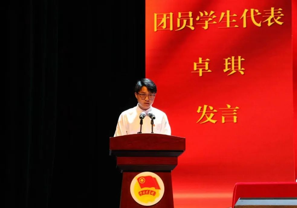 大会在庄严的国歌中隆重开幕。青年教师代表邵丹倩、团员学生代表卓琪分别发言。他们表示要勇担历史使命,在担当中历练,在尽责中成长,将爱国情、强国志、报国行融入中华民族伟大复兴的实践中,在青春的赛道上奋力奔跑,争取跑出当代青年的最好成绩。