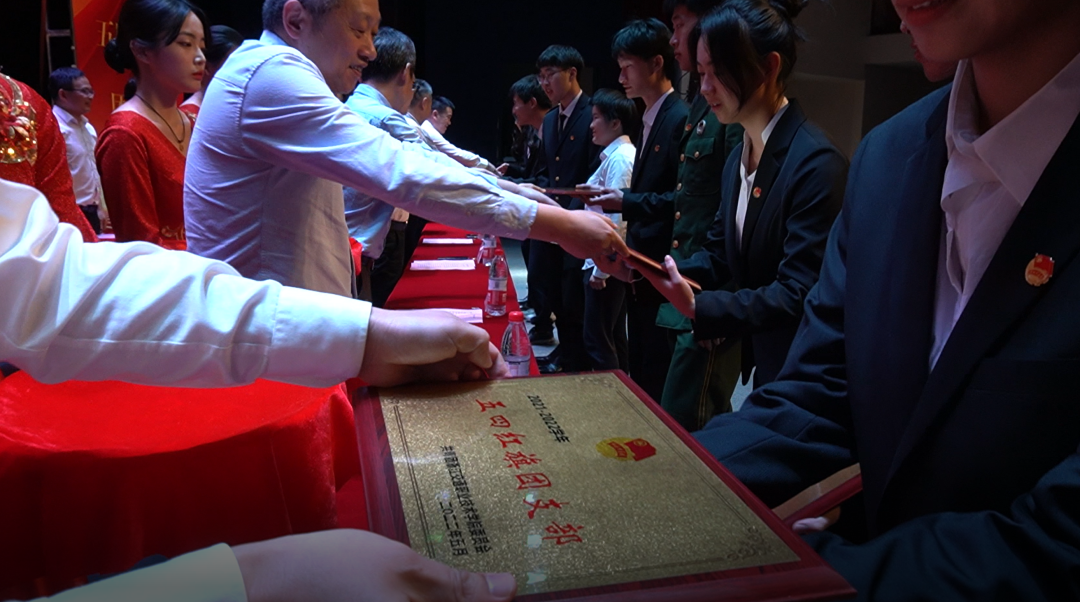 随后,校领导为获得荣誉的先进集体和先进个人代表颁发荣誉证书和纪念徽章。“优秀社团干部”代表、“优秀志愿服务工作者”代表、“五星级志愿者”代表、“优秀团员”代表、“优秀团干部”代表、“五四红旗团支部”团支部书记上台接受表彰。台下掌声雷动,将大会现场氛围推向高潮。