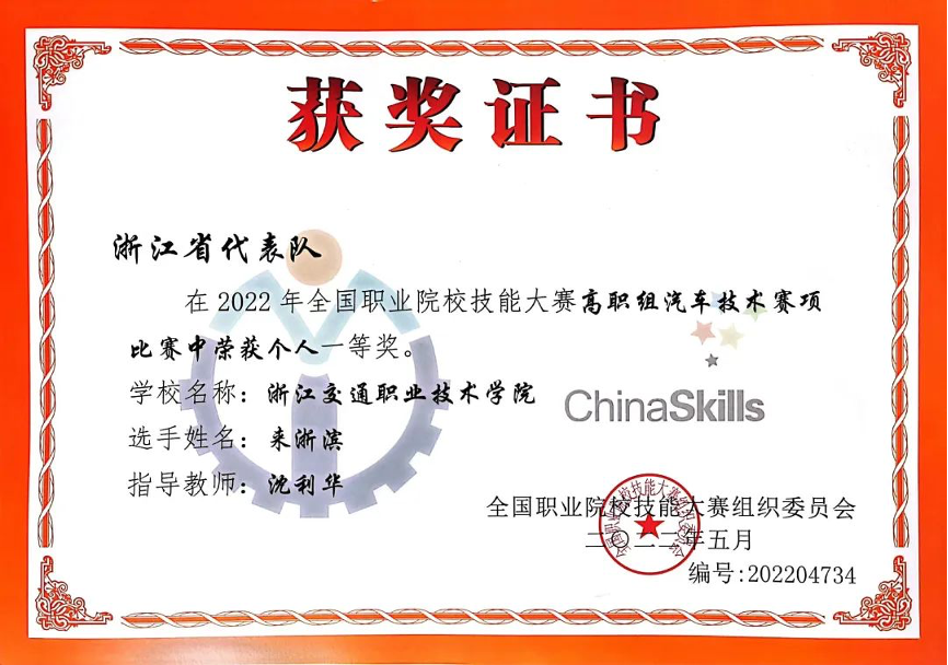 8月8日至8月9日,由教育部、天津市人民政府、国家发改委等36部委和协会共同举办的2022年“中银杯”全国职业院校技能大赛汽车技术赛项(高职组)在河北科技工程职业技术大学成功举办。全国有61支代表队同台竞技,参赛选手围绕传统汽车(发动机管理+车身电气)、纯电动汽车、智能网联汽车等三大技术方向四大技能模块展开激烈角逐。经过两天的激烈拼搏,由汽车学院朱福根院长为领队,沈利华、王征老师指导的来浙滨同学斩获一等奖,为学校“双高”建设增添国家级标志性成果。